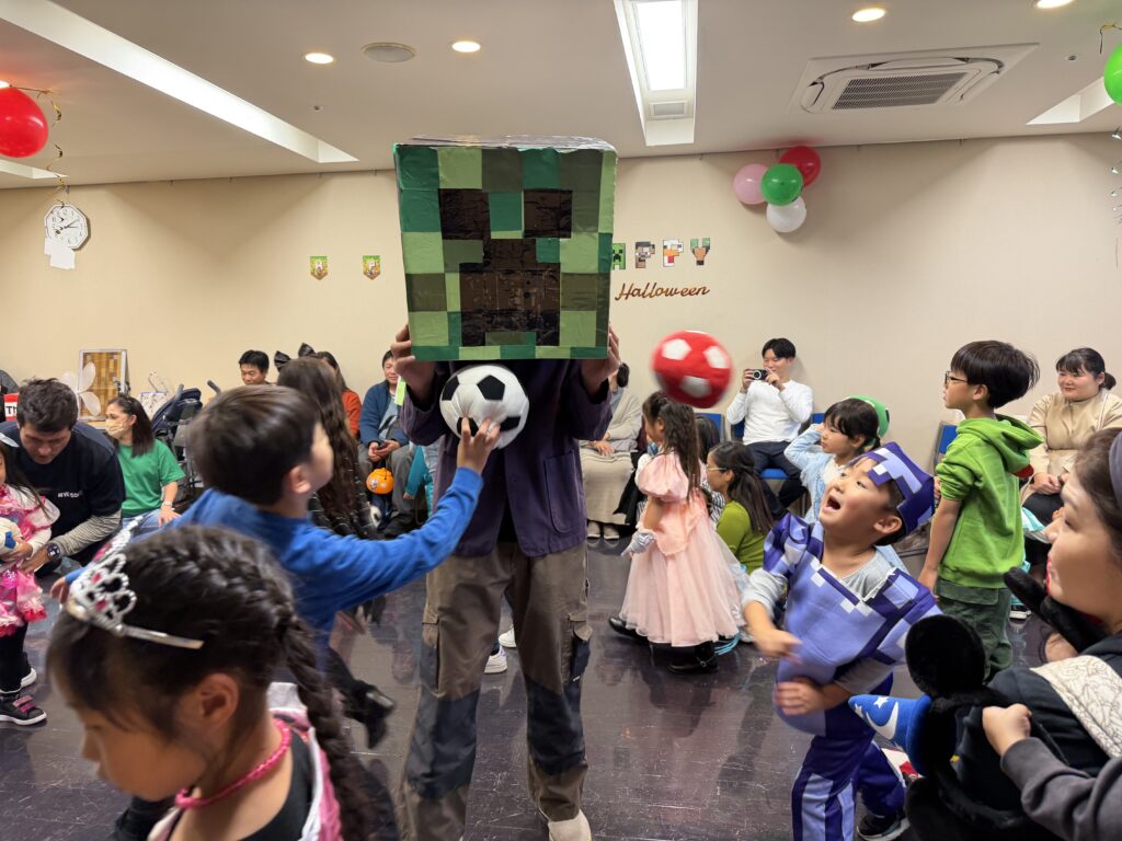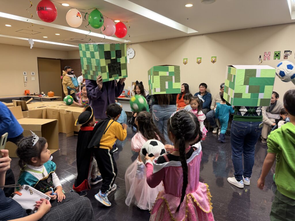 2025年のハロウィンパーティーは、Minecraft をテーマに開催され、たくさんの子どもたちが参加して大いに盛り上がりました。Creeper に変身した先生にボールを当てるゲームをはじめ、さまざまなアクティビティを楽しみながら、子どもたちは笑顔いっぱいの時間を過ごしました。おいしい食事も囲み、にぎやかで思い出に残るハロウィンイベントとなりました。